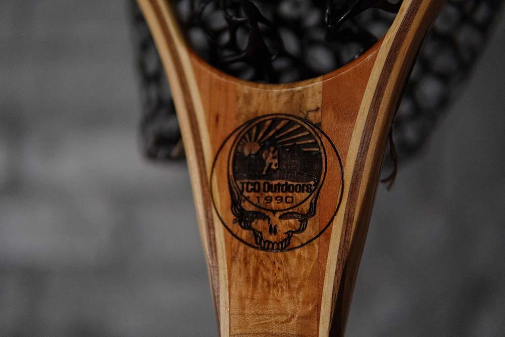 TCO Fly Shop partnered with Wayward Trading Post to create handmade, one-of-a-kind, wooden nets featuring TCO’s Steal Your Face logo meticulously etched. Each net is unique and has a different variation of the wood grain. Â