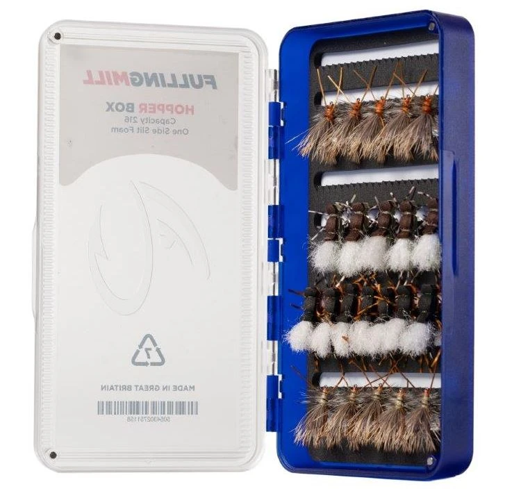 The Fulling Mill Hopper box was conceived as a real multi-purpose all rounder. With room for 216 patterns the box has good depth to suit a variety of sizes. Benefiting from a sleek, premium frosted lid you can see what’s what before lifting the hood. The addition of guide ridges to the outer casing helps you keep a firm grip on things. Magnetic closure. Size: 32 x 106 x 186mm