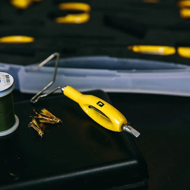 The classic whip finisher with a powder-coated ergonomic body. The base of the tool has been sharpened, so that finishing flies and clipping thread can be accomplished with one single tool.