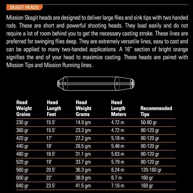 - Skagit heads should be paired with our Mission Running Line and Mission Tips
