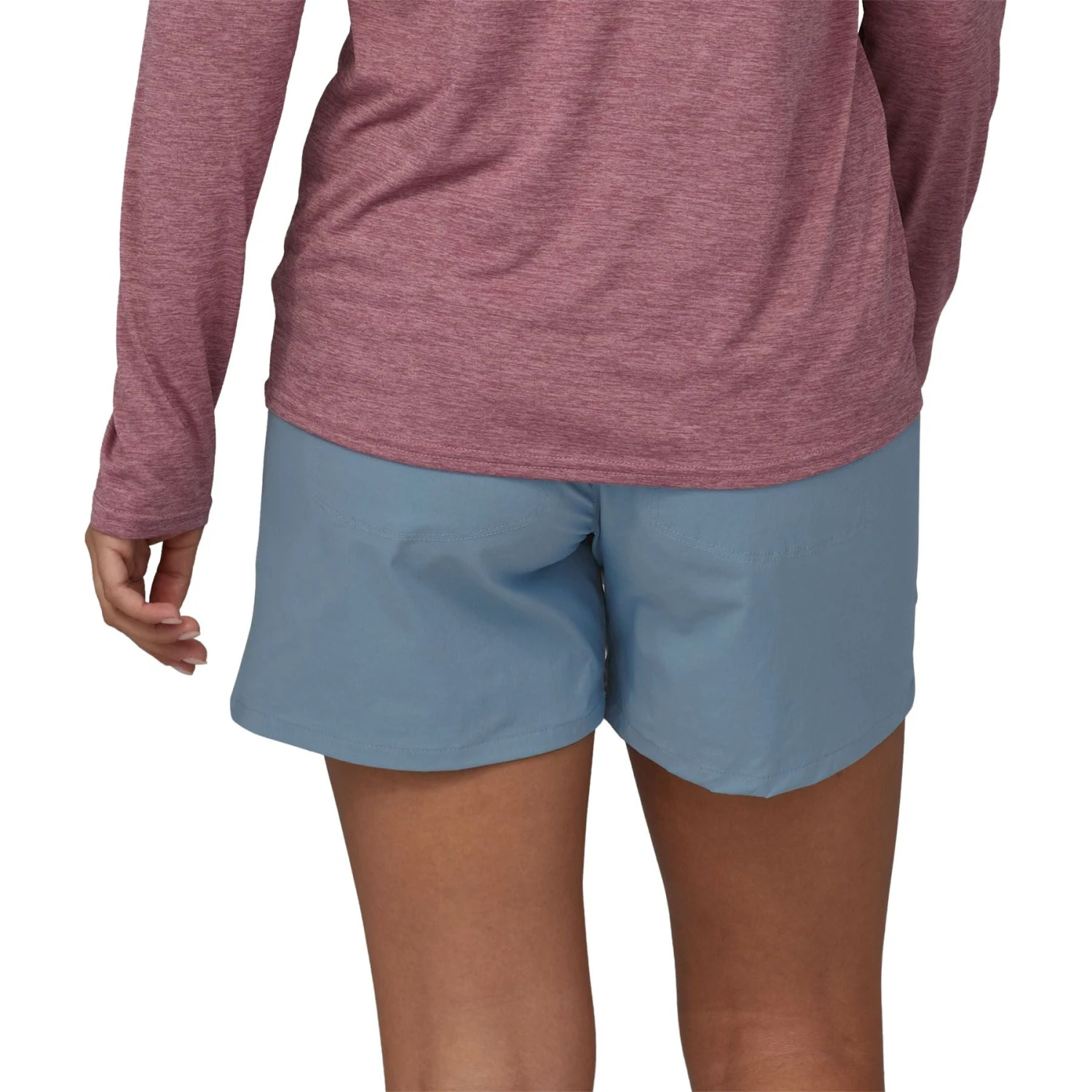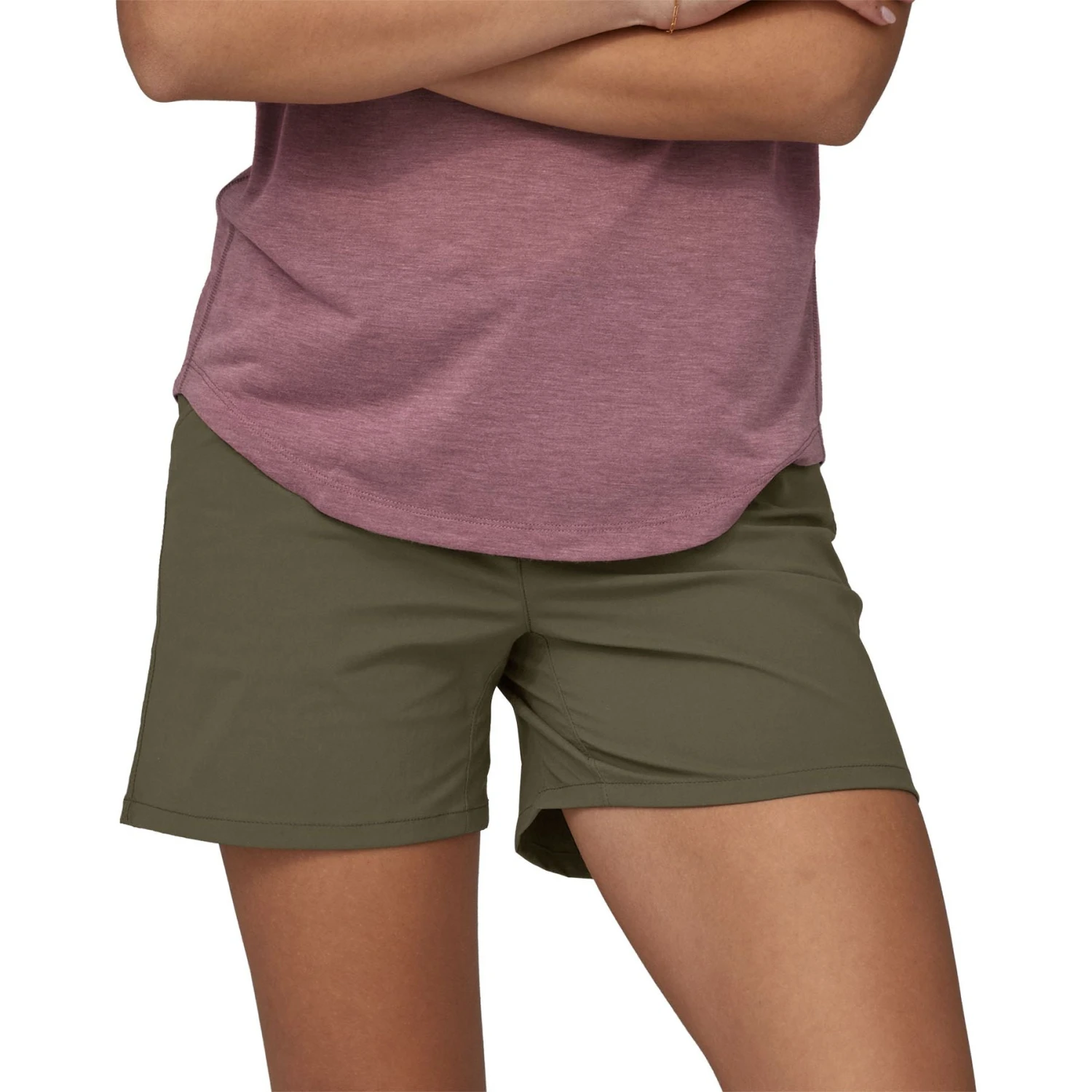These lightweight hiking shorts with a 5″” inseam are made of stretch-woven 95% nylon (65% recycled)/5% spandex with a DWR (durable water repellent) finish. Also available in 7″” inseam.