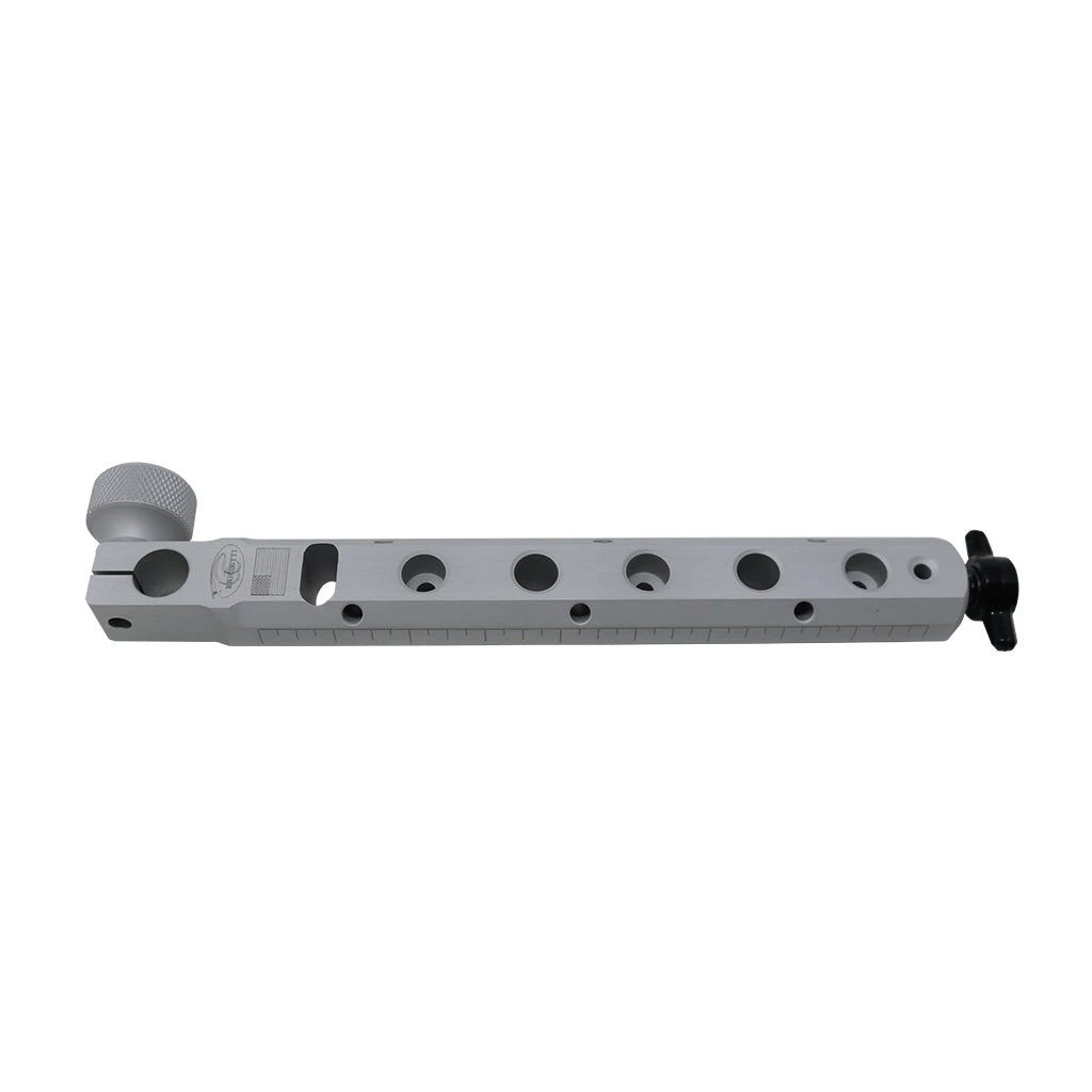 A great tool organizer, designed to hold a number of fly-tying hand tools including scissors, and an Enhancement Plate. It is made out of aluminum and will fit any 3/8 stem. Its locking mechanism is superior to any toolbar on the market. It comes in 2 sizes and a number of colors to customize your vise.