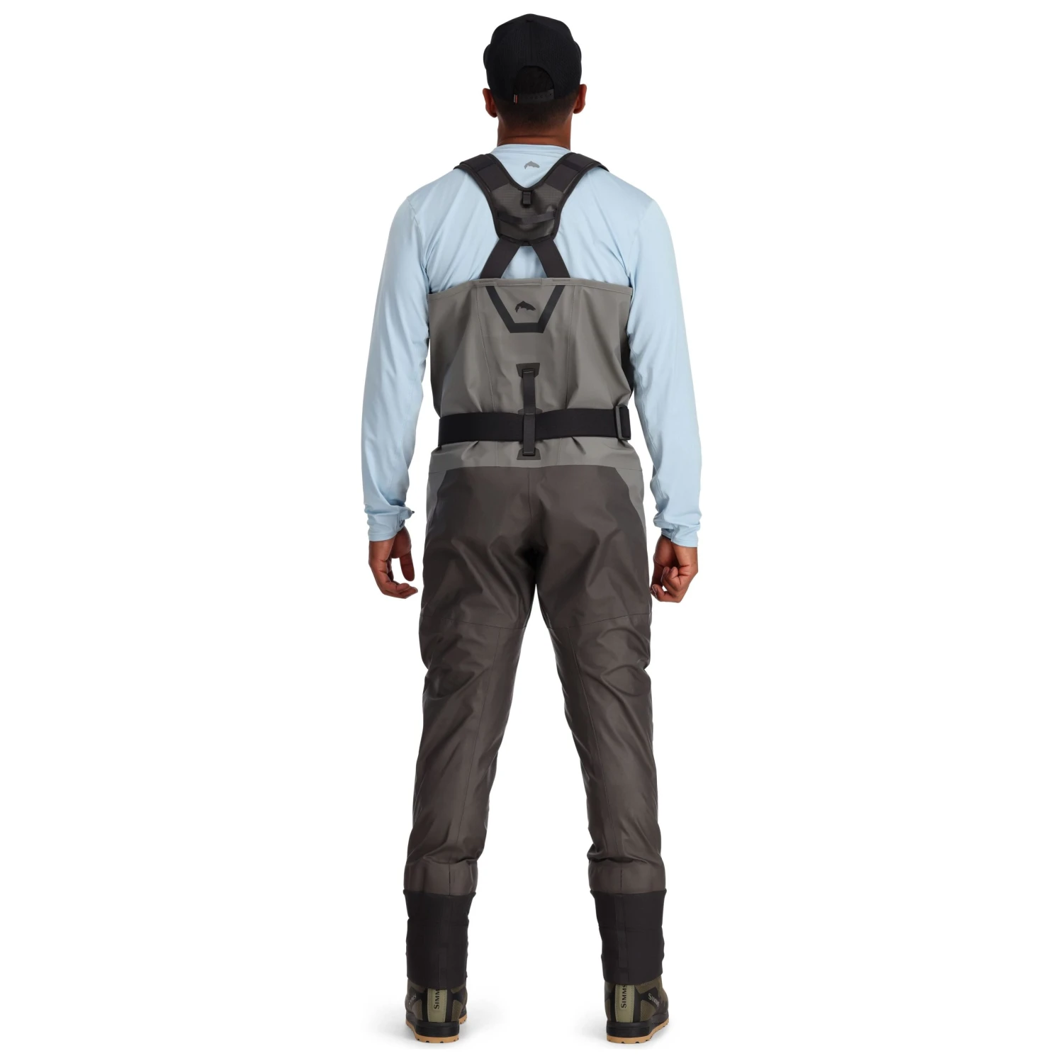 - Fabric: Upper: 4-layer stretch Toray® wader fabric Lower: 4-layer Simms proprietary polycarbonate wader laminate