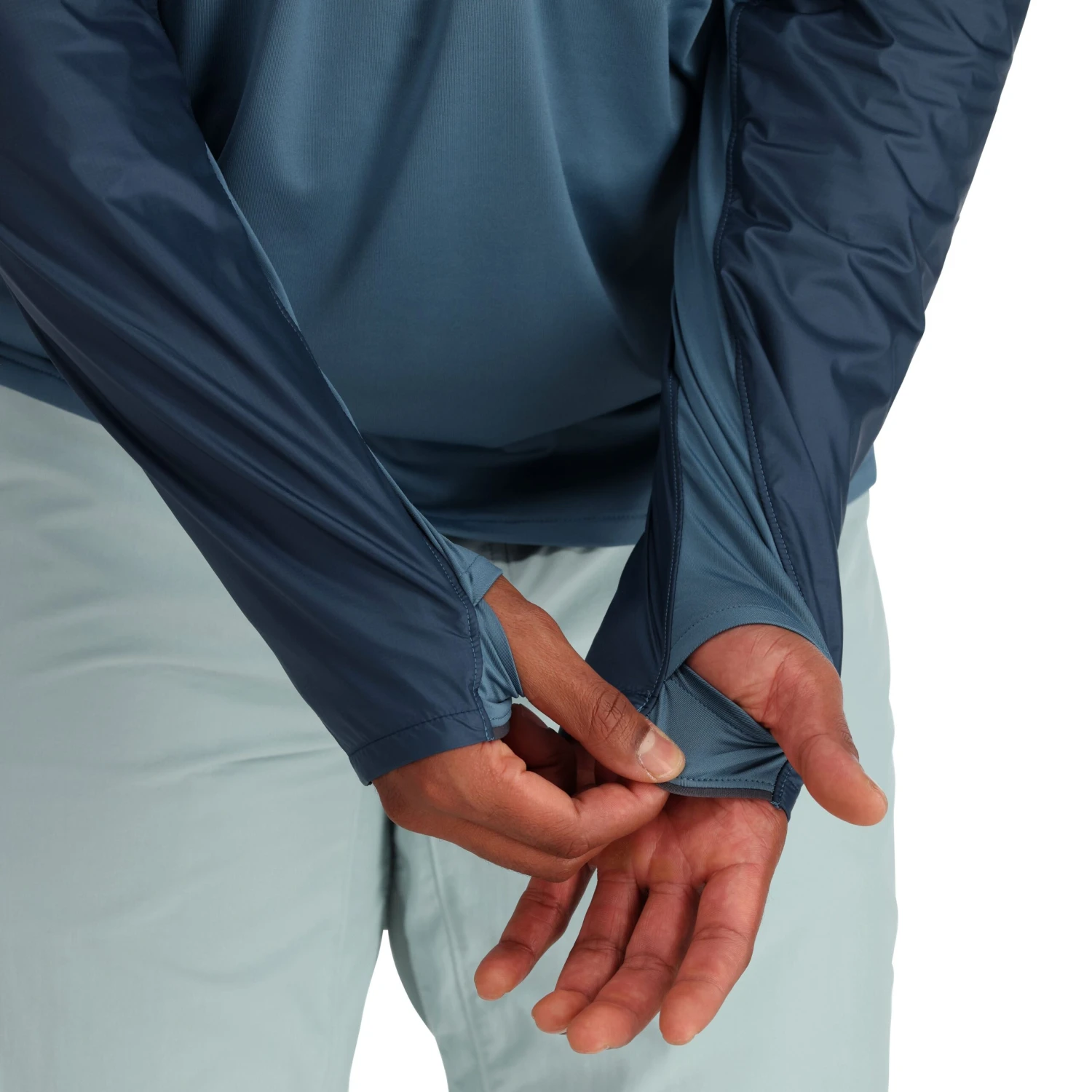 - Extended sleeve length with envelope thumbholes and a center finger loop for back-of-hand sun protection