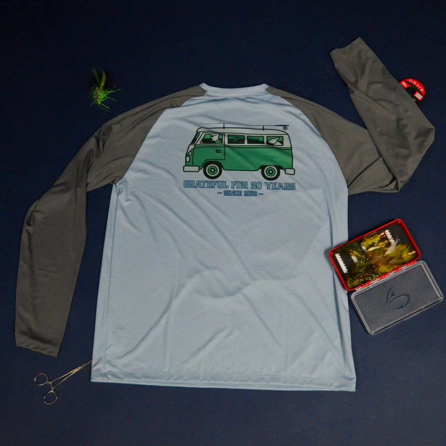 This Simms tech tee collaboration is a tribute to life on the road. Our owner Tony Gehman loves hitting the road and bringing his favorite dog along with him.