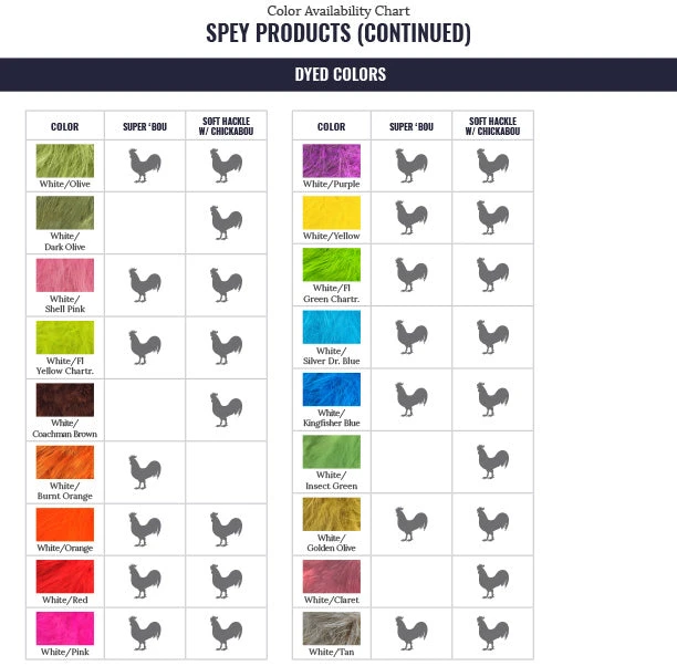 Two very unique feathers in 1 pelt. The first feather, the soft hackle, is a wide, webby soft feather great for large collars on salmon, steelhead, bass, and saltwater flies. The second feather, the chickabou is a smaller marabou. Much finer than turkey marabou, the chickabou is excellent for small streamers, leech patterns, dragonfly, and damselfly nymphs.